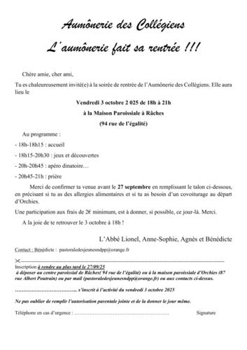 Elle s’adresse aux jeunes de la 5ème à la 3ème, après leur profession de Foi mais aussi à ceux qui n’ont pas été baptisés : chacun rejoint le groupe là où il en est sur le chemin de foi, avec ses questions.